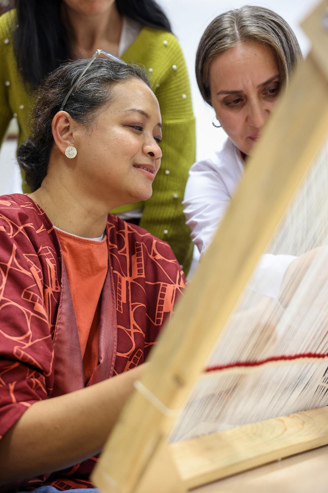 During the event, which brought together guest artists specializing in batik, fabric weaving, tapestry weaving, embroidery, and fashion design, our program introduced and demonstrated traditional Turkish weaving techniques such as kilim, carpet weaving, zili, sumak, cicim, and the Turkmen knot. Throughout the visit, traditional Turkish coffee and tea were served to our guests.