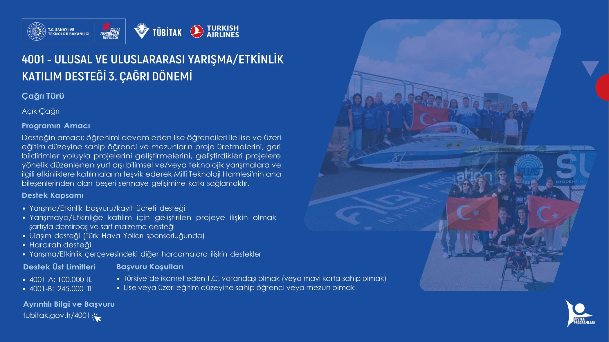 Ulusal ve Uluslararası Yarışma/Etkinlik Katılım Desteği çağrıları yayınlanmıştır.