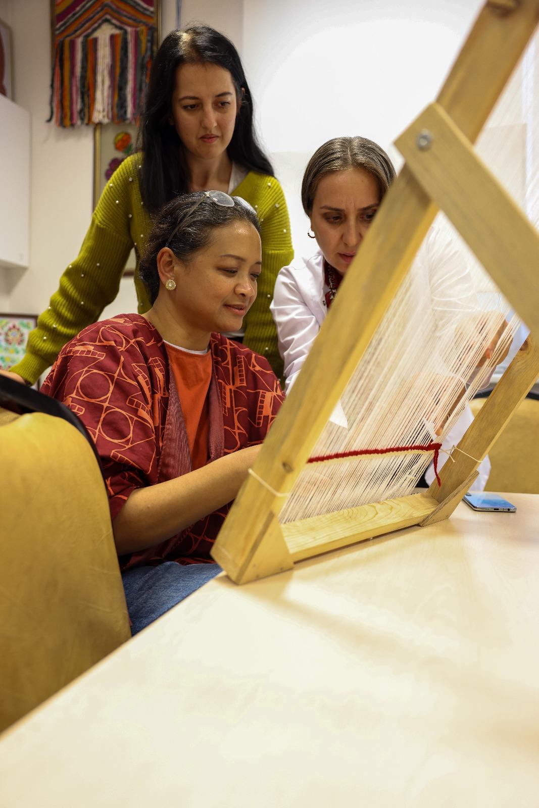 Batik, kumaş dokuma, goblen dokuma, nakış işleme ve moda tasarımı gibi alanlarda uzman konuk sanatçılar ile gerçekleştirilen buluşmada, programımız tarafından kilim, halı, zili, sumak, cicim ve Türkmen düğümü gibi geleneksel Türk dokuma teknikleri tanıtılmış, uygulamalı olarak gösterilmiştir. Ziyaret kapsamında misafirlerimize Türk kahvesi ve Türk çayı ikram edilmiştir.